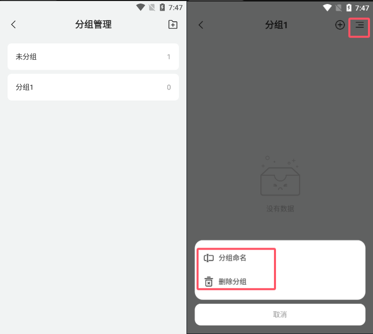 在分组管理界面选择任意分组点击进入,随后点击右上角,既可改分组名字或者删除分组