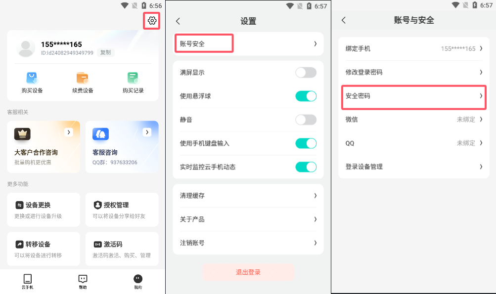 在“我的”界面点击右上角的齿轮,然后点“账号安全”,最后点“安全密码”去设置即可,要修改也是在这里直接输入新密码即可完成修改。