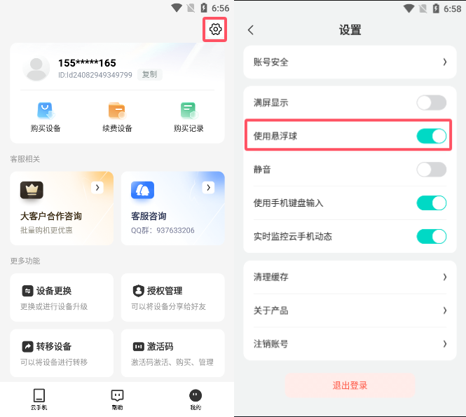 在“我的”界面点击右上角的齿轮,然后点“使用悬浮球”