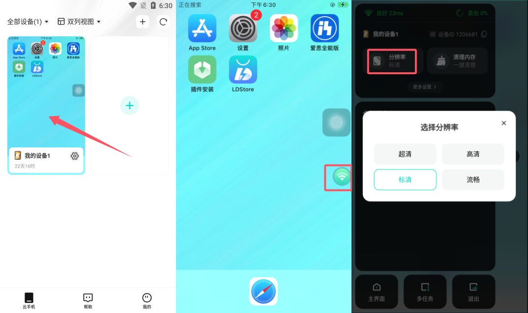 驰电云手机调整设备分辨率方法