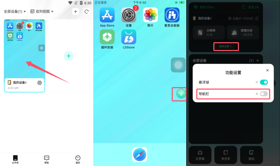 先进入设备,然后找到悬浮球,点更多设置,然后开启设备导航栏即可