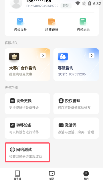 在“我的”界面往下面翻既可以看到“网络测试”,进入去测试即可