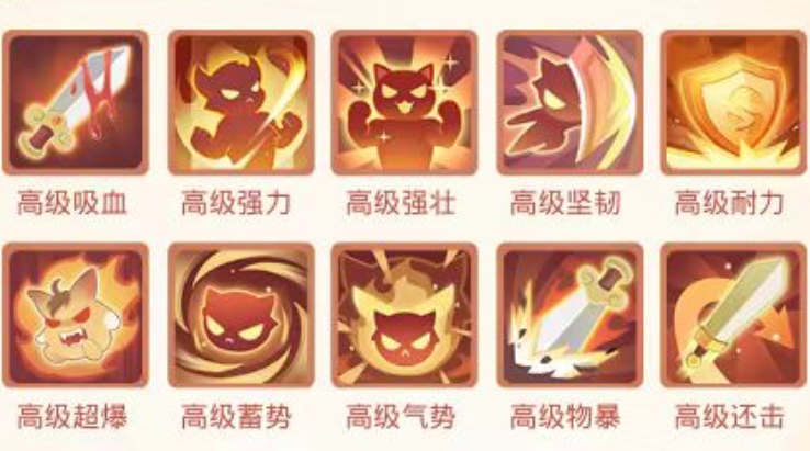 高级吸血、高级强力、高级强壮、高级坚韧、高级耐力、高级超爆、高级蓄势、高级气势、高级物暴、高级还击