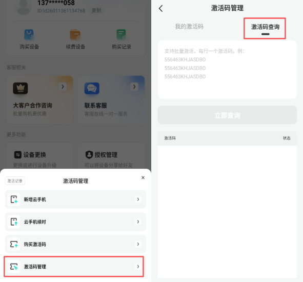 :输入激活码点击查询即可查看激活码状态(需使用拥有购买激活码权限账号才可查询)