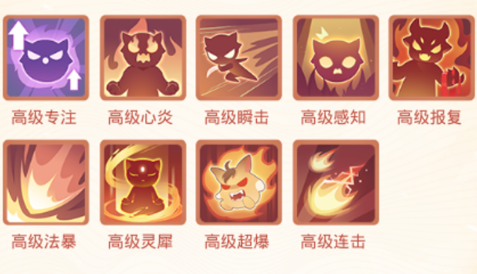 高级专注、高级心炎、高级瞬击、高级感知、高级报复、高级法暴、高级灵犀、高级超爆、高级连击