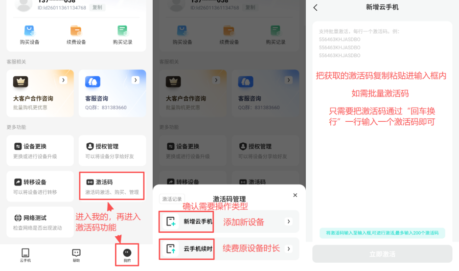 第一步:在客户端找到“我的”版块内“激活码”功能