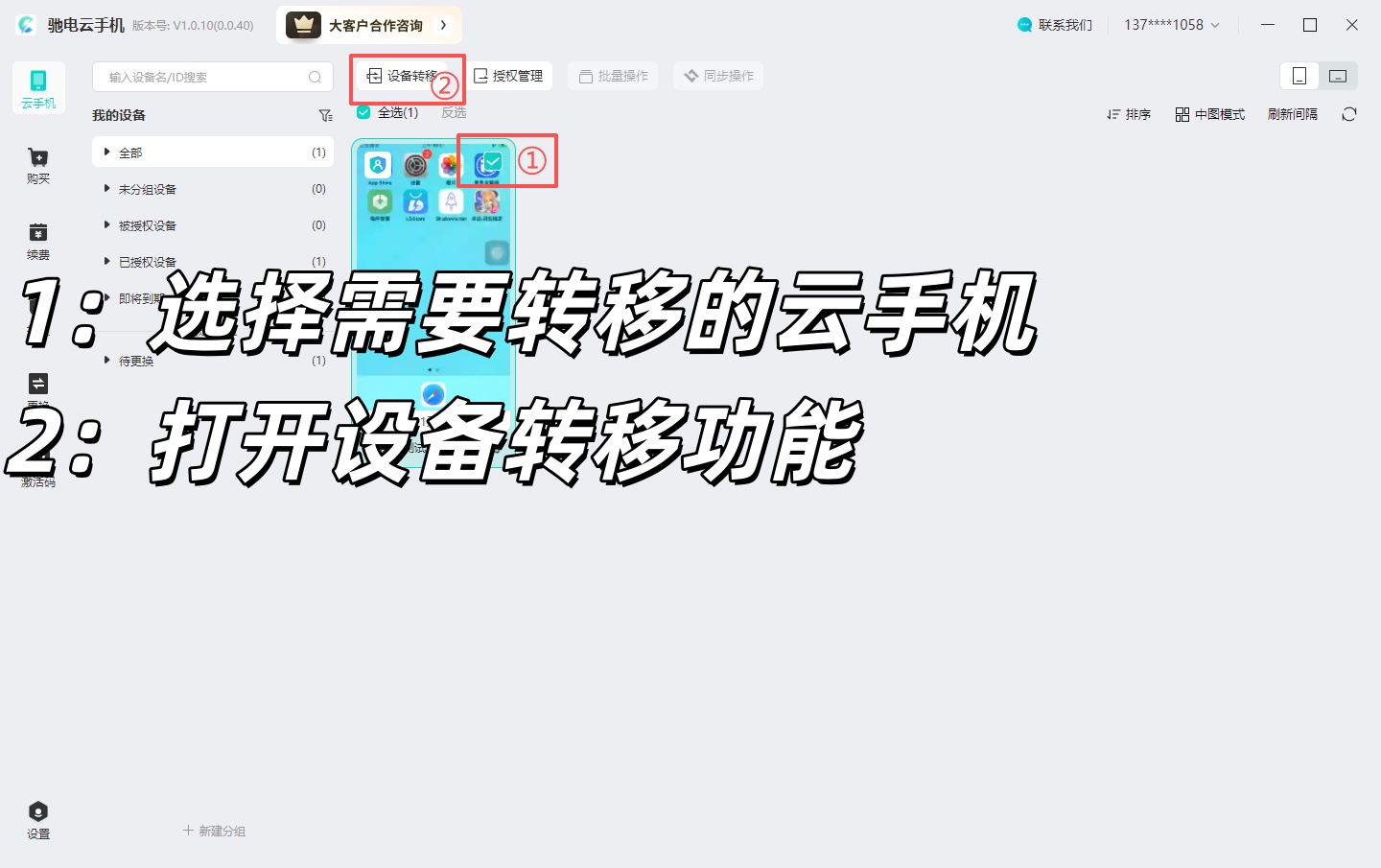 资讯中心/云手机教程/【FAQ】驰电云电脑端转移设备怎么操作