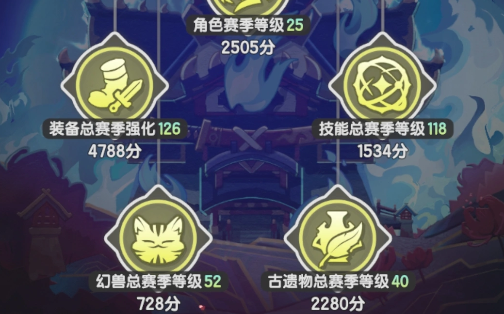 遗物总赛季等级每级57分,以共鸣槽内强化10级为基础(只计算上方共鸣槽等级)